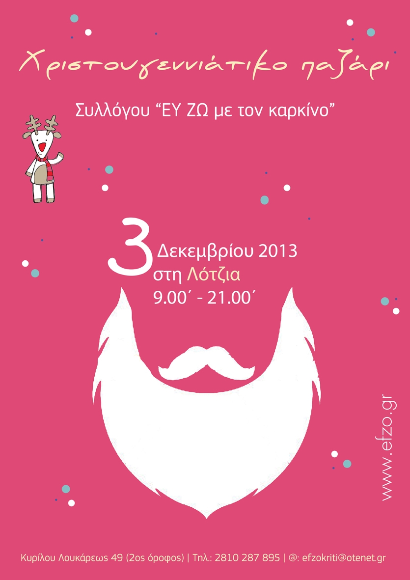 Συγκεντρώνουμε, μέχρι 30 Νοεμβρίου, αντικείμενα (όχι ρούχα) από δεύτερο χέρι όπως βιβλία, γυαλικά, παλιά κοσμήματα, διακοσμητικά, παιχνίδια, βρεφική προίκα, μικροσυσκευές αλλά δεχόμαστε και δικές σας κατασκευές καθώς και γλυκά φτιαγμένα με το μεράκι σας για το ετήσιο παζάρι μας στις 3 Δεκεμβρίου στη Λότζια τα έσοδα του οποίου καλύπτουν ένα μεγάλο μέρος των δράσεών μας. Και σας περιμένουμε εκείνη την ημέρα από τις 9 το πρωί έως τις 9 το βράδυ όχι μόνο για να αναζητήσετε λύσεις για τα μικροδωράκια σας σε απίστευτα χαμηλές τιμές αλλά και για να γνωρίσουμε από κοντά όλους εσάς που μας στηρίζετε τόσα χρόνια.....
