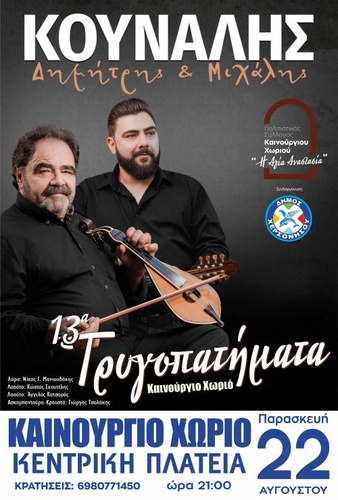 21:30 – Κρητικό παραδοσιακό γλέντι με τους Δημήτρη & Μιχάλη Κουνάλη στην πλατεία του χωριού όπως παλιά